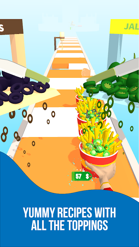لكن كن حذرا ، كونك طاهيا ماهرا ليس مجرد نزهة في الحديقة! عليك أن تكون متيقظًا بما فيه الكفاية ضد اللصوص الذين سيأخذون صناديق البطاطس المقلية مجانًا ، بالإضافة إلى تجنب أنواع مختلفة من العقبات والتحديات التي سيطرحها المسار.