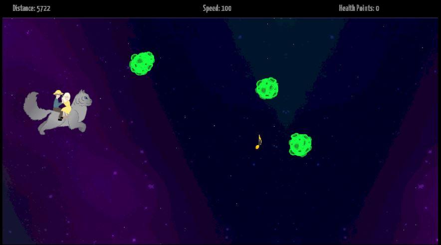 استُلهمت هذه اللعبة الصغيرة، التي تجمع بين الخيال والطير الساقط، من عازفة البيانو الروسية ماريا بيزروكوفا وألبومها الموسيقي "ديجا فو". لا يوجد الكثير لذكره عن أسلوب اللعب - ستطير في الفضاء كقطة، وتُصدر صوت "مواء مواء"، وتحاول تجنب النيازك، وتستمع إلى نسخة ماريا المُعاد إنتاجها بتقنية 8 بت لأغنيتها "يومًا ما معك...".