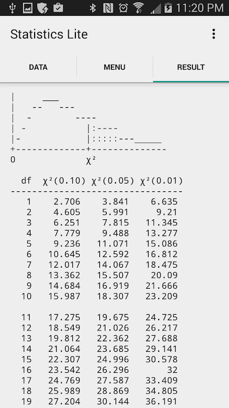 يوفر تطبيق "إحصاء خفيف" إحصاءات وصفية أساسية، مثل المجموع، ومجموع المربعات، والمتوسط الحسابي، ومجموع مربعات الانحراف، والتباين، والانحراف المعياري، والوسيط، والمنوال، وزخم البيانات، والالتواء، والتفرطح، ومخطط الصندوق والشارب، والجدول التكراري.