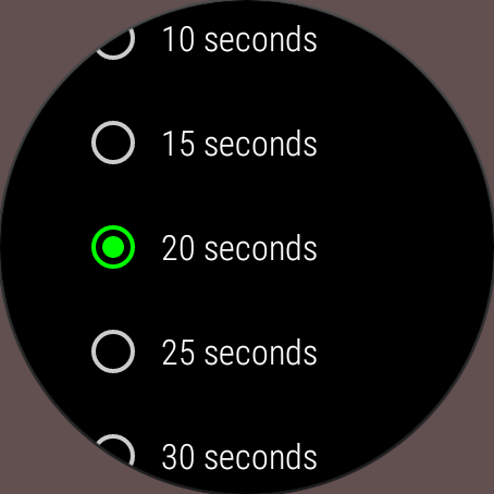 يتيح لك StayLit Wear الحفاظ على الإضاءة مضاءة لأطول فترة تريدها - أيضًا لأكثر من 30 ثانية: دقيقة واحدة ، أو دقيقتان ، أو 3 دقائق ، أو 5 دقائق ، أو غير محدود حتى تقوم بإيقاف تشغيل الشاشة. يوفر StayLit مقياسًا دقيقًا للقيم بين 5 ثوانٍ و 30 ثانية.