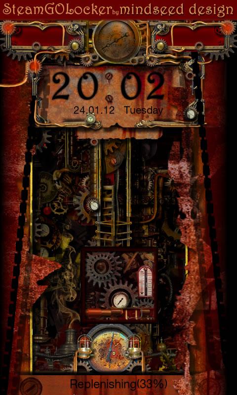 For those of you who prefer a brighter clock, there is another version of this lock screen with less grittier and more visible letters. It's called GO Locker Steampunk Light Theme.