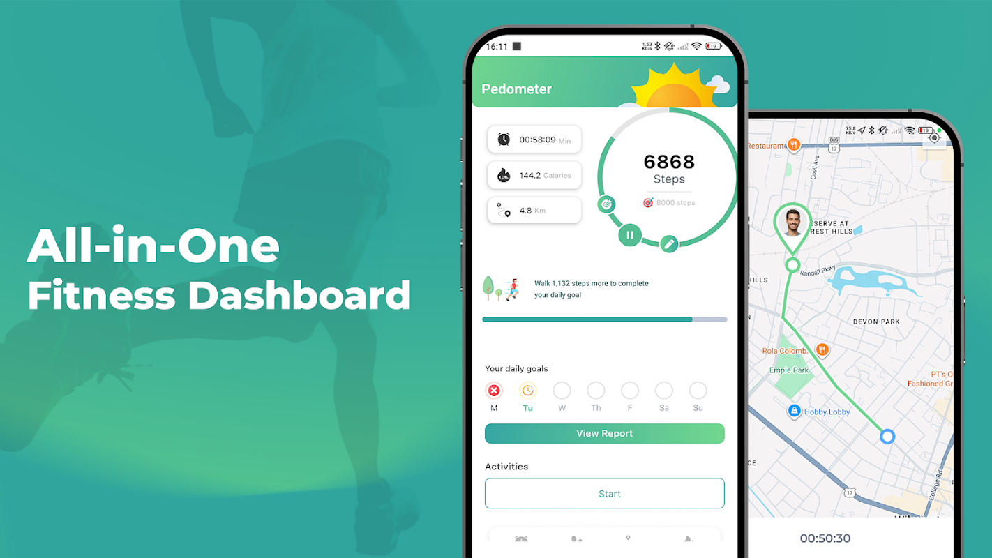 عدّ خطواتك، وتتبع السعرات الحرارية والمسافة. حافظ على نشاطك مع مُتتبّع اللياقة البدنية اليومي!