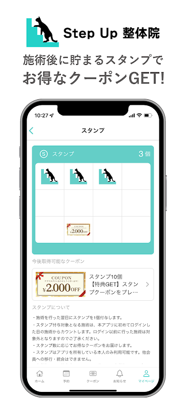 من خلال التطبيق، يمكنك الحصول على أحدث المعلومات والعروض الرائعة من عيادة Step Up Chiropractic Clinic. يمكنك أيضًا التحقق من القائمة والفترة الزمنية التي تريدها وإجراء الحجوزات من هاتفك الذكي في أي وقت. عن طريق تثبيت التطبيق، يمكنك استخدام Step Up Chiropractic Clinic بشكل أكثر ملاءمة وأقرب إلى منزلك.