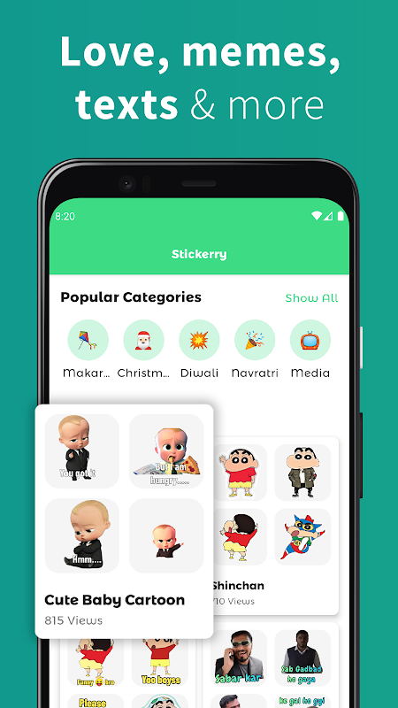 Stickerry هو أحد أفضل التطبيقات لملصقات WhatsApp والذي يوفر أكبر مجموعة من أفضل الملصقات من مصادر مختلفة. 😮
