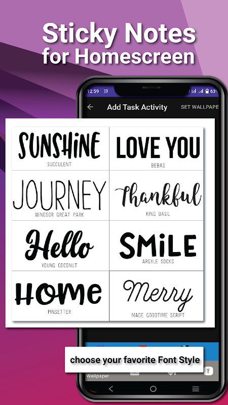 ★ نمط خط الملاحظات الملصقة: ملاحظة يوفر تطبيق Sticky العديد من الخطوط النصية الأنيقة لكتابتها على الملاحظات اللاصقة.
