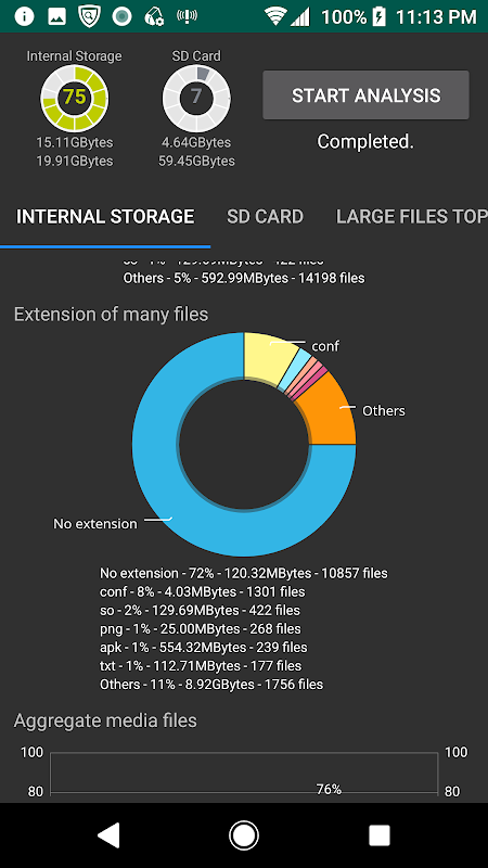 *Since the difference after deletion processing is not reflected in the chart and disk usage gauge, please start analysis again.