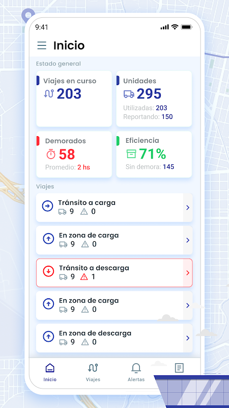 إنها لوحة تحكم للرحلات الداخلية والإمدادات ونقل البضائع والصناديق والبضائع المنقولة على منصات نقالة. يسمح بقياس الانحرافات الزمنية في كل مرحلة من الرحلة والتنبؤ بالتأخير في الالتزام بالجداول الزمنية المجدولة. يمكن دمجه مع نظام تحديد المواقع العالمي (GPS) الخاص أو التابع لجهة خارجية والمعلومات من أنظمة الإدارة المختلفة ونظام TMS.