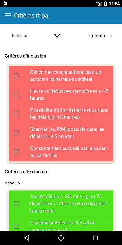 L’application contient plusieurs outils dont un calculateur du score NIHSS, une checklist des critères d’inclusion et d’exclusion du rt-pa et un calculateur de la dose de rt-pa.
