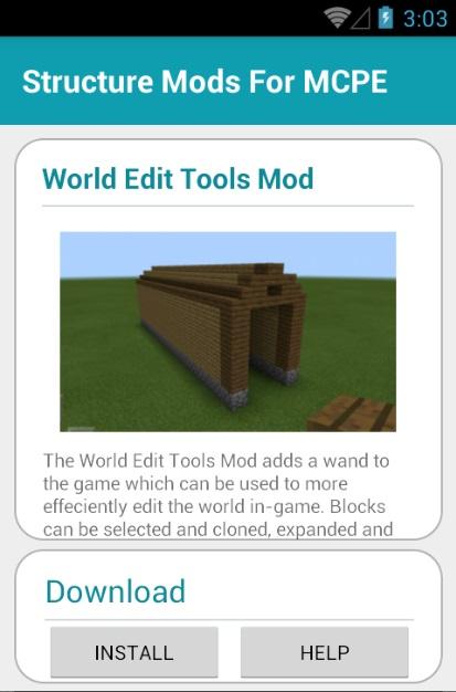 Structure Mods For MCPE The VoxelSniper Mod lets you effeciently create structures of all kinds of different shapes by the simply use of a bow and arrows. It provides a great settings interface where you can toggle and set several kinds of parameters, such as diameter, block ID and much more. The mod also comes with a painting function which allows you to paint structures with a set block ID.