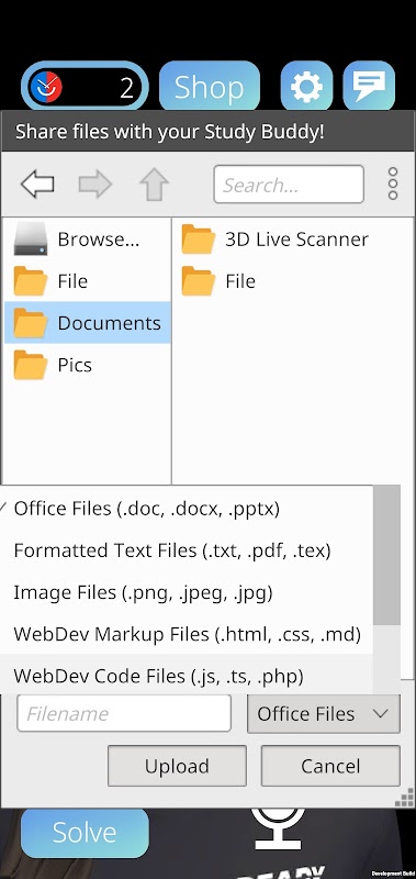استخدم ميزة البحث القوية في التطبيق للبحث عن المعلومات عبر الإنترنت، أو البحث في الملفات التي تم تحميلها مثل المستندات، وPDF، وPPT، والصور، وحتى ملفات التعليمات البرمجية. يدعم Study Buddy أيضًا تحميلات بيانات JSON، مما يجعله متعدد الاستخدامات لتلبية احتياجات الدراسة المختلفة.
