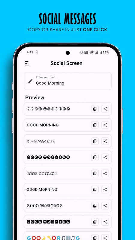 • المشاركة الاجتماعية بنقرة واحدة: شارك نصوصك ورسائلك الرائعة على الفور على وسائل التواصل الاجتماعي.