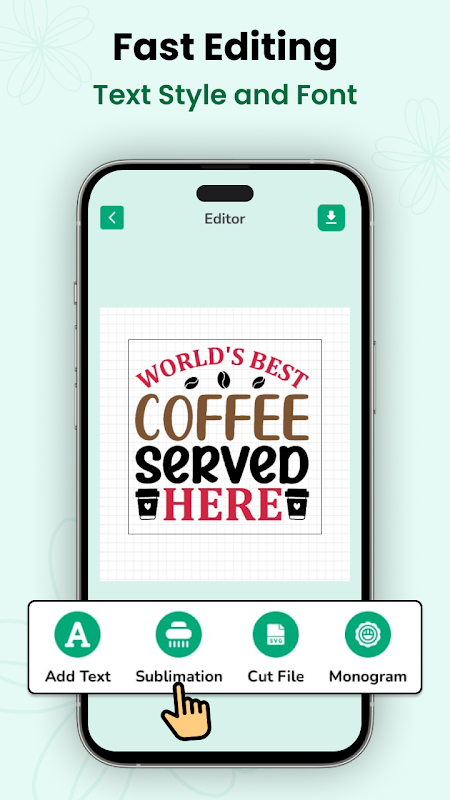 يمكّنك التطبيق من إنشاء تصميم كريكت، تصميم قص، تصميم بطاقات، تصميم كروت، تصميم تيشيرت، تصميم ملصقات، تصميم شعار، تصميم ديكور، تصميم جاهز، تصميم طباعة، تصميم سبللميشن والمزيد، باستخدام أدوات احترافية مصممة للمبتدئين والمحترفين.
