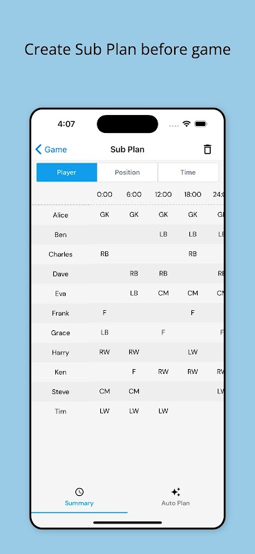 يقدم SubTime مجموعة واسعة من الميزات لتسهيل إدارة المباريات الخاصة بك. يمكنك بسهولة تتبع كل من وقت اللعب ووقت مقاعد البدلاء، واللاعبين الفرعيين داخل وخارج اللعبة، وإنشاء تناوب تلقائي لضمان حصول جميع اللاعبين على وقت لعب متساوٍ. يمكنك الاختيار من التشكيل القياسي أو إنشاء تشكيل مخصص، وحفظ التشكيلات لسهولة الوصول إليها. يتيح لك التطبيق أيضًا تعيين مراكز لكل لاعب، وتحديد الحضور، وتتبع الأحداث، وعرض إحصائيات اللعبة التفصيلية. يمكن تصدير سجل اللعبة وإحصائيات اللاعب كملف CSV لأغراض التدقيق أو التتبع.