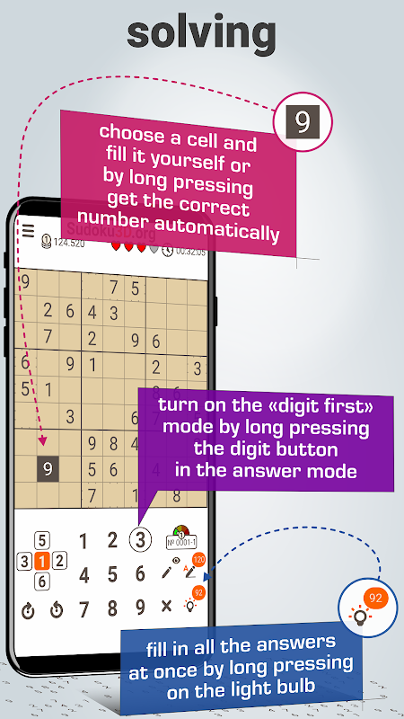 ► حدد خلية فارغة واملأها يدويًا بالرقم الصحيح، أو بالضغط مطولاً في وضع الحل، احصل على الرقم الصحيح تلقائيًا.