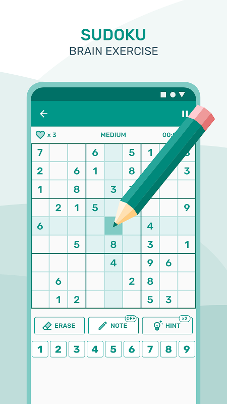 Sudoku هي لعبة ألغاز شعبية تعتمد على المنطق وتستند إلى وضع الأرقام. استمتع بتجربة سودوكو الكلاسيكية بطريقة مجددة!