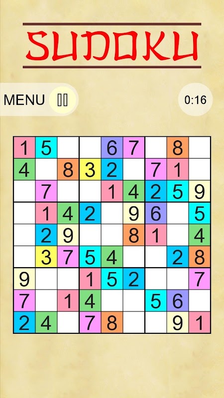 Sudoku playfield is a large square with the dimensions 9 x 9 cells, which in turn is divided into smaller square field size of 3 x 3 cells.