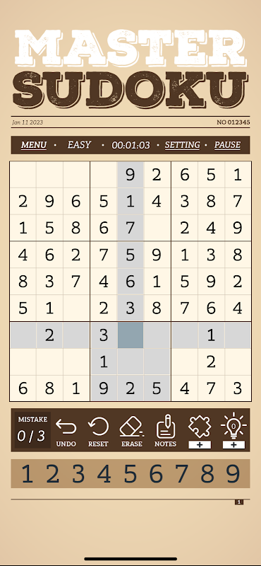تم تصميم لعبة Master Sudoku لتكون بديهية وسهلة الاستخدام.