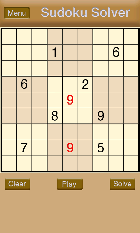 يمكنك إدخال أي شروط ابتدائية (أرقام خاطئة مُظللة باللون الأحمر) وسيقوم البرنامج بحل هذا اللغز. إذا لم يكن الحل واحدًا، فسيتم عرض النتيجة الأولى وعدد الحلول الممكنة.