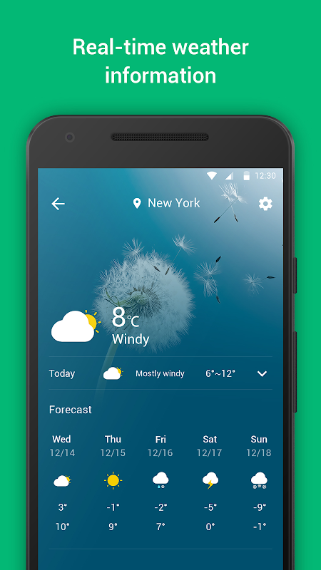 الطقس: يعرض بيانات درجة حرارة الطقس لمدة سبعة أيام الذي يتيح لك أن تعد مقدما قبل سفرك، ويذكر لك ملاحظة التغيرات في درجات الحرارة في الوقت الحقيقي.