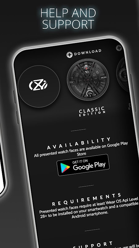 هام: يتطلب وجه الساعة حدًا أدنى من Wear OS API من المستوى 28 أو أعلى للعمل (على سبيل المثال ، Samsung Watch 4 أو غيرها من الأجهزة المتوافقة مع Wear OS API من المستوى 28+).