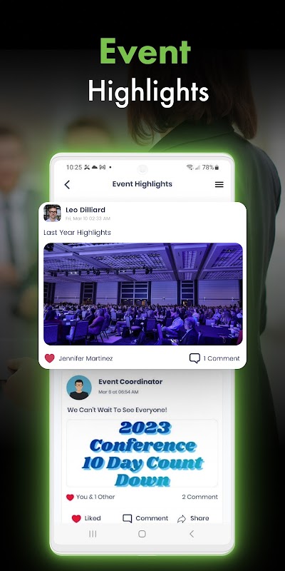 تتيح لك ميزة Event Highlights نشر الصور والتعليق عليها وإبداء الإعجاب بها ومشاركتها مع كل من حضر.
