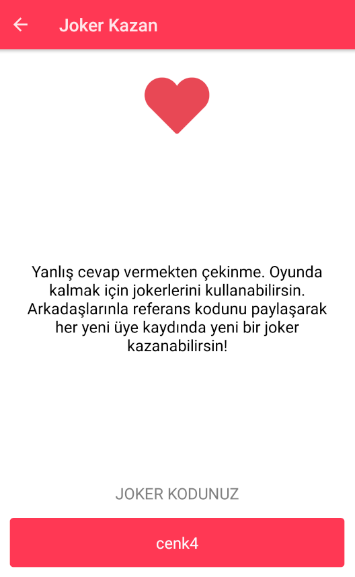 Arkadaşlarınızı davet ederek Joker kazanabilir ve ödüle bir adım daha yaklaşabilirsiniz.
