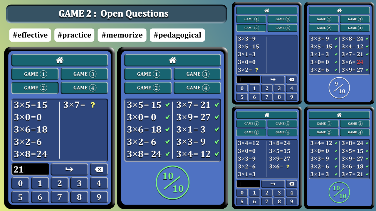 تطبيق Table3x مجاني ولكنه فعال جدًا للعمل وحفظ جدول الضرب بـ 3. تصميم جديد، ألعاب جديدة، رسوم متحركة جديدة. الآن يقدم تطبيق Table3x 4 ألعاب: