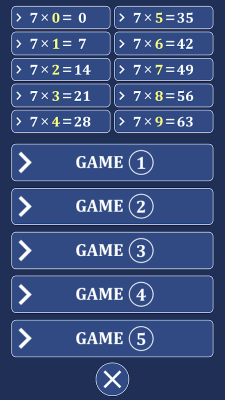 تطبيق Table7x مجاني ولكنه فعال جدًا للعمل وحفظ جدول الضرب في 7. تصميم جديد، ألعاب جديدة، رسوم متحركة جديدة. والآن يقدم تطبيق Table7x 5 ألعاب: