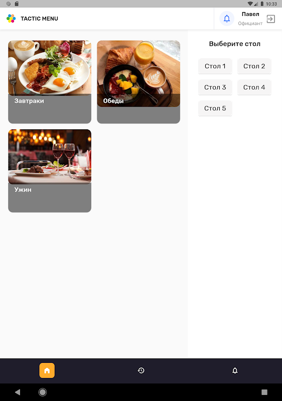 تطبيق لموظفي المطعم. يسمح لك بوضع طلبات العملاء في القائمة الرقمية.