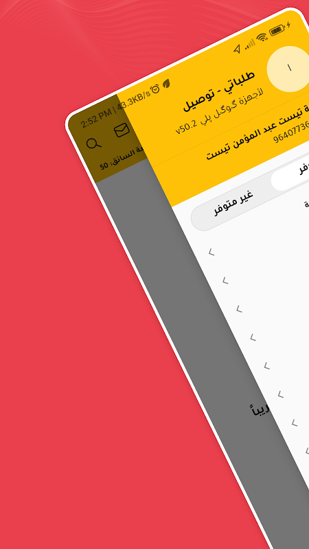 دعم الخدمة الخلفية: يعمل طلباتي في الخلفية حتى عند إغلاقه، مستخدمًا خدمات الخلفية لضمان استلام الإشعارات والطلبات الجديدة دون الحاجة إلى إبقاء التطبيق مفتوحًا باستمرار. تساعد هذه الميزة في الحفاظ على كفاءة التشغيل مع احترام عمر البطارية للمستخدم. يمكنك تفعيل أو تعطيل الخدمة الخلفية من خلال تبديل توافر السائق.