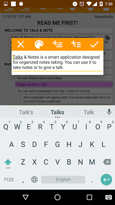 ويمكن استخدامه لتدوين الملاحظات أثناء الحديث، أو للمتكلم لإعطاء مؤتمره (دوكإكس الاستيراد أو ملفات .txt).