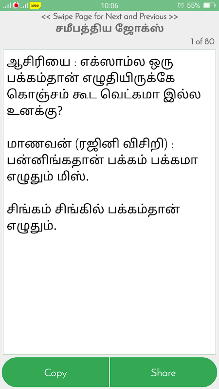 Users can read Tamil Jokes, funny jokes, santa banta jokes, short jokes, silly jokes and much more within a frame.