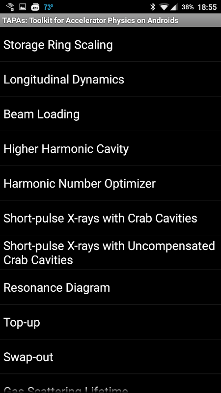 تاباس لتقف على مجموعة أدوات لمسرع الفيزياء على أجهزة Android. انها تسمح "الخلفية من بين المغلف" الفيزياء حسابات مسرع، مع 50 أنواع مترابطة من العمليات الحسابية. وتشمل هذه حلقة تخزين التوسع مع الطاقة ومحيط. ديناميكية طولية، شعاع تحميل، وتجاويف التوافقية في حلقات. الليزر خالية من الإلكترونات. الإلكترون المعجلات الخطية. البنادق الإلكترون. ضغط باقة. المغناطيس متعددة الأقطاب التي يهيمن عليها الحديد. نبضة قصيرة من الأشعة السينية. undulator تأثيرات على المدار والبصريات. undulator خصائص الإشعاع، الهجينة المغناطيس وundulator فائقة التوصيل نماذج الدائمة؛ أعلى متابعة المعلمات. الكهرومغناطيسية. أشعة السنكروترون. مرور الجسيمات من خلال المسألة؛ والحسابات الهندسية.