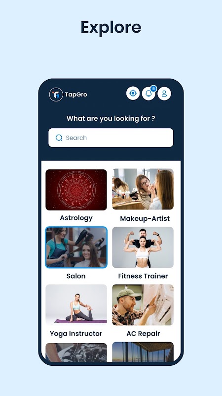 TapGro هي منصة حيث يمكنك الحصول على خدمتك بالسعر الذي تريده. نريد إحداث ثورة في الطريقة التي يكتشف بها المستخدمون مختلف الخدمات والشركات ويتفاعلون معها. مع TapGro ، لديك أداة قوية في متناول يدك تتيح لك استكشاف مجموعة واسعة من العروض ، من خدمات التجميل والعافية إلى مراكز اللياقة البدنية والبوتيكات والمزيد.