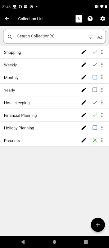 يؤدي الضغط لفترة طويلة إلى وضع علامة على المهمة أو عنصر قائمة التحقق على أنه X - مستبعد.