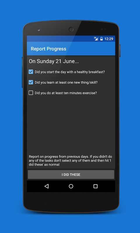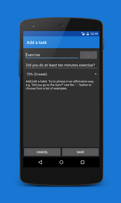 ★ Using Task:Life you set goals such as going to the gym twice a week or not eating cake five days a week, then track your progress over time.