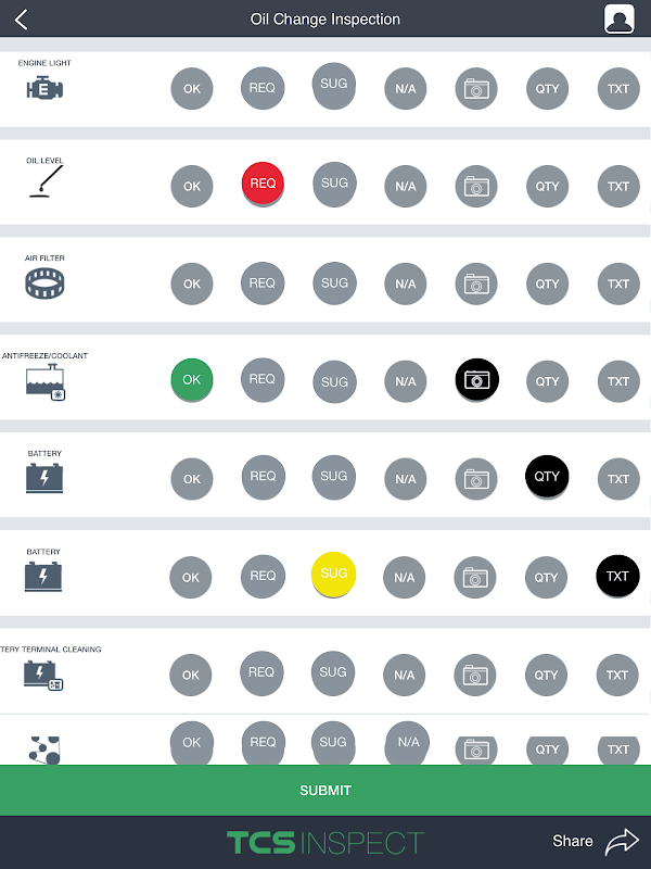 يسمح الإصدار الجديد من التطبيق للفني بالتقاط صور لمناطق مختلفة من السيارة ويمكنه إرسالها ليتم عرضها من قبل العميل. يمكن الآن تقديم تعليقات إضافية من خلال صفحة التفتيش الخفيفة.