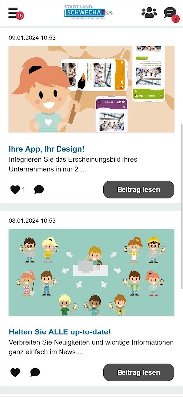 مع تطبيق موظف TeamSchwechat سوف تكتشف النوع الجديد من الاتصالات الداخلية. كن دائمًا على اطلاع على الأخبار المهمة والعروض الجذابة لموظفي بلدية شفيتشات، بغض النظر عن مكان عملك. باستخدام برنامج المراسلة المتكامل، يمكنك الدردشة مباشرة مع زملائك ومشاركة تجاربك الشخصية أو أفكارك على اللوحة المثبتة. يقوم TeamSchwechat بربطك بإدارة المدينة بأكملها ويعزز التعاون والتبادل في مجتمعنا المتنوع.
