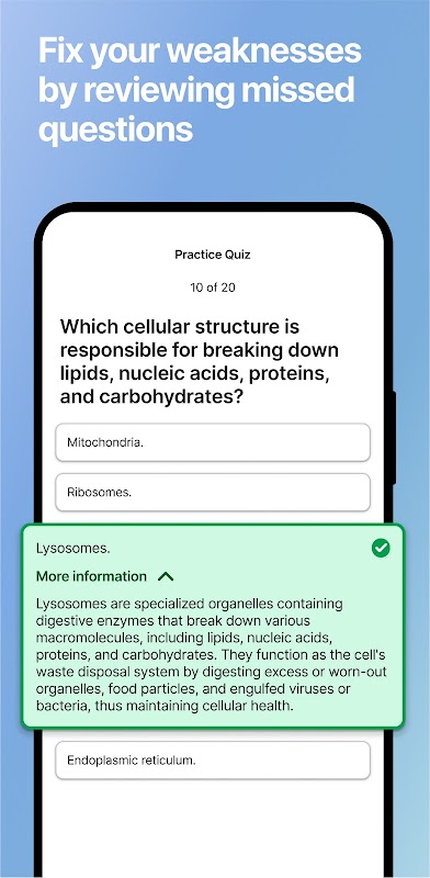 يتم حفظ كل سؤال فاتك في قسم المراجعة، حتى تتمكن من التركيز على المناطق الضعيفة وتحسين فهمك العام.