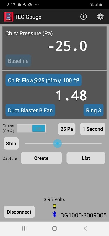 TEC Gauge هو تطبيق محمول من TEC يوفر تحكمًا لاسلكيًا وعرضًا لمقياس الضغط DG-1000 أو DG-700 أو DG-8. تتيح لك ميزة Capture في التطبيق تخزين ومشاركة القراءات من جهاز القياس الخاص بك باستخدام البريد الإلكتروني أو تطبيقات المشاركة السحابية المثبتة على جهازك المحمول (مثل Google Drive و Dropbox). يمكن عرض القراءات في مجموعة متنوعة من التنسيقات المعروفة على نطاق واسع.