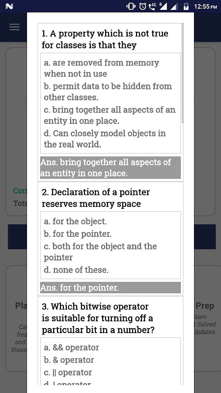 وتقدم الأسئلة مثل مجموعة من 10 أسئلة مختارة عشوائيا من سلة من مئات الأسئلة في كل مجالات جافا، C، C ++ الخ