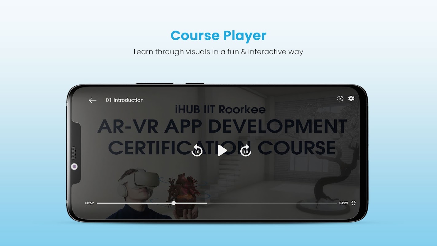 Start your AR-VR development journey by installing this app. Free courses are also available. Perfect for beginners. Learn to build interactive AR-VR applications for VR Headsets (with six Degree of Freedom Controllers such as Oculus Quest, HTC Vive etc.). Can also use the company's patented Techxr Developer Kit (TXDK) as a substitute for VR Headsets. Courses vetted by IIT Roorkee Professor and taught by industry experts. Get Certificate from iHub IIT Roorkee on completion.