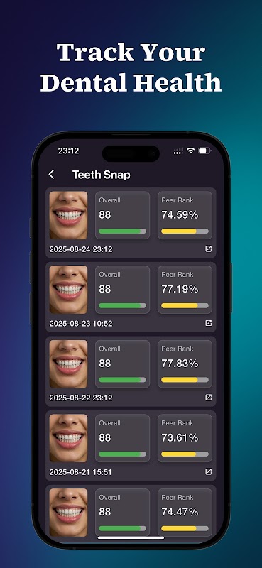 حمل تطبيق TeethSnap وتحكم بصحة أسنانك مع رؤى مدعومة بالذكاء الاصطناعي، في أي وقت وفي أي مكان!