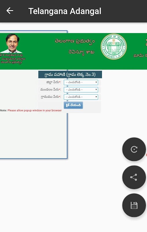 عرض، حفظ والطباعة واشاطركم adangal / pahani.