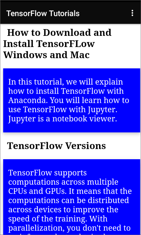 This FREE app will help you to understand Tensorflow Programming Language properly and teach you about how to Start Coding using Tensorflow. Here we are covering almost all Classes, Functions,