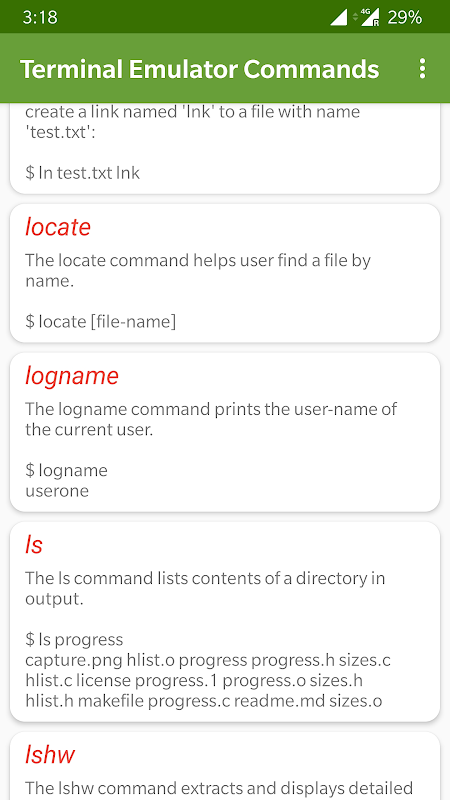 الإصدارات القديمة لـ Terminal Emulator Commands