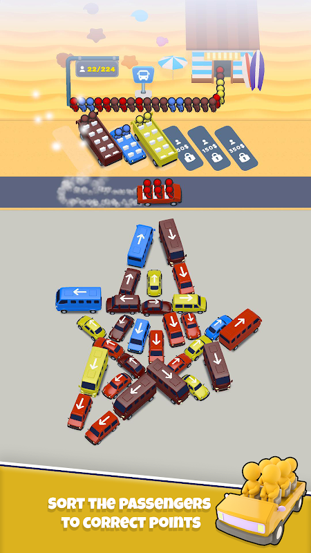 الاستعداد لصداع حركة المرور من نوع مختلف! Traffic Jam هي لعبة ألغاز مليئة بالتحديات حيث تتمثل مهمتك في حل موقف انتظار الحافلات الفوضوي. قم بنقل الحافلات والركاب بشكل استراتيجي إلى وجهاتهم مع التغلب على قيود وقوف السيارات. مع كل مستوى، تصبح الألغاز أكثر تعقيدًا، مما يختبر مهاراتك في حل المشكلات إلى أقصى حد. هل يمكنك السيطرة على الجنون وتصبح المتحكم النهائي في حركة المرور؟