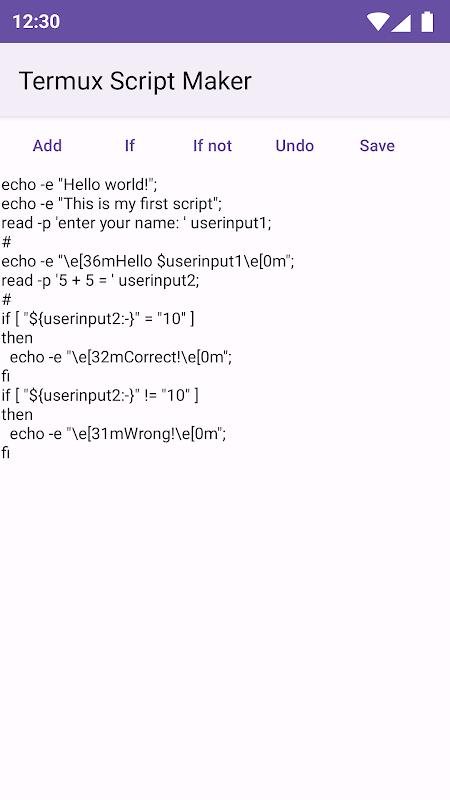 إنشاء البرنامج النصي الخاص شل termux دون الترميز المطلوبة.