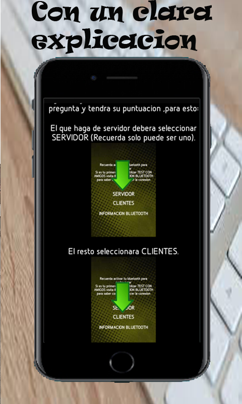 Con esta modalidad de test podrás hacer el mismo test al mismo tiempo con tus amigos, un máximo de seis dispositivos sincronizados mediante bluetooth, y estudiar todos al mismo tiempo.