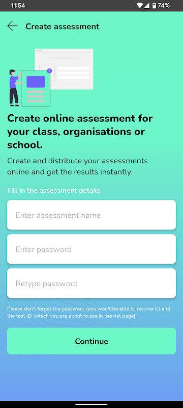 يوفر لك Testmaker عنوان URL بسيطًا أو رابطًا يمكنك مشاركته مع طلابك حتى يتمكنوا من بدء الاختبار. يعمل Testmaker على جميع متصفحات الويب على أجهزة الكمبيوتر المكتبية والأجهزة اللوحية والهواتف المحمولة ؛ حتى في اتصالات الإنترنت ذات النطاق الترددي المنخفض. يمكنك أيضًا تعيين حد زمني للاختبار.